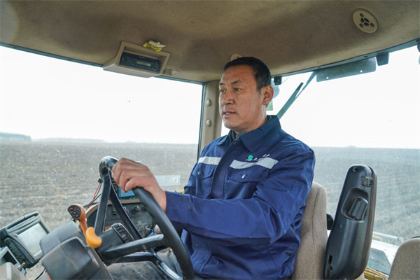 2023年4月12日,在黑龍江省北安市的北大荒集團(tuán)建設(shè)農(nóng)場(chǎng)有限公司一處農(nóng)田中,許志國(guó)駕駛大型拖拉機(jī)進(jìn)行分層定量施肥作業(yè)。新華社記者 王松 攝