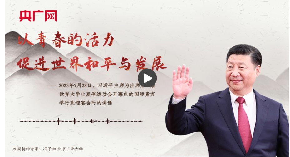 這段話出自2023年7月28日習(xí)近平主席為出席第31屆世界大學(xué)生夏季運(yùn)動(dòng)會(huì)開(kāi)幕式的國(guó)際貴賓舉行歡迎宴會(huì)時(shí)的講話。