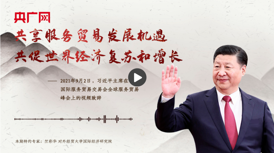 這段話出自2021年9月2日習近平主席在中國國際服務貿易交易會全球服務貿易峰會上的視頻致辭。