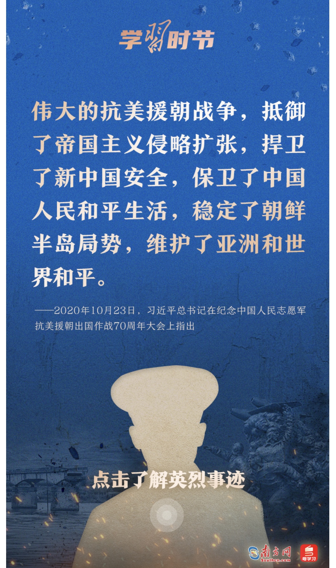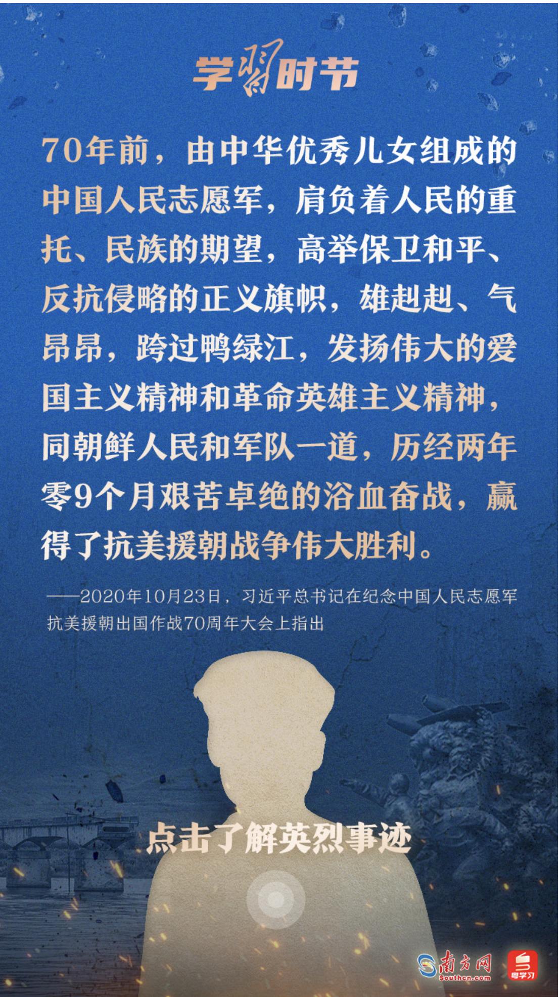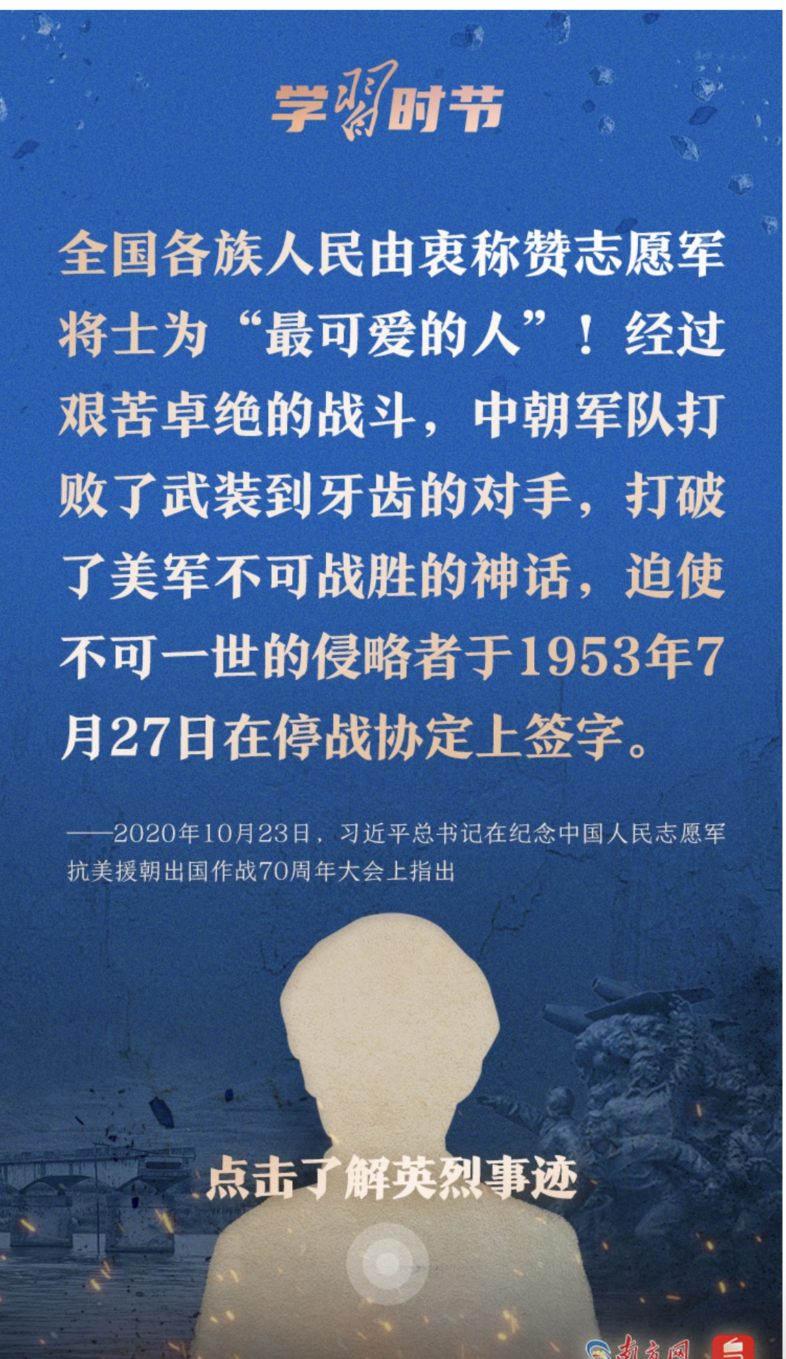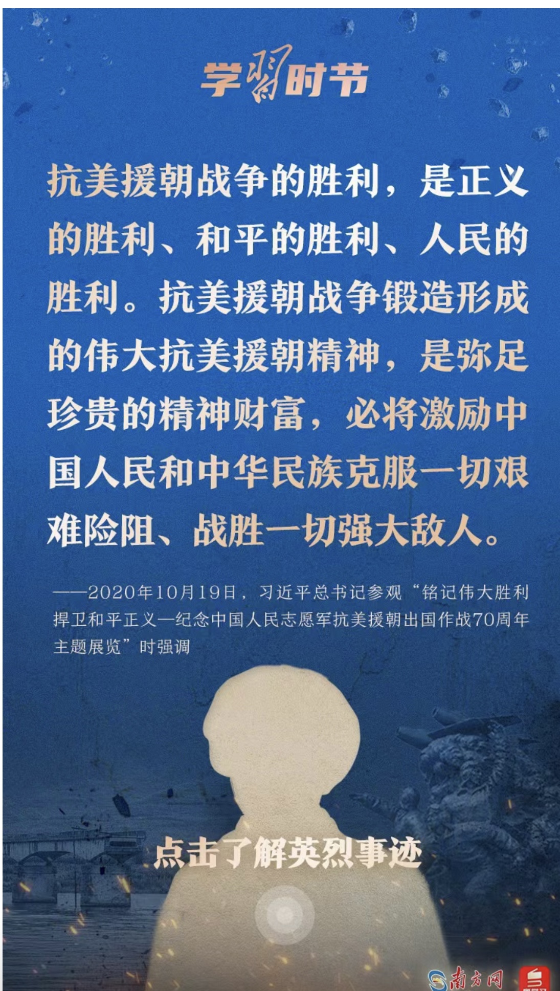 今天,讓我們一起學(xué)習(xí)習(xí)近平總書記的重要論述,永續(xù)傳承偉大抗美援朝精神。勿忘歷史,不負(fù)英魂!銘記過往,繼續(xù)前行!