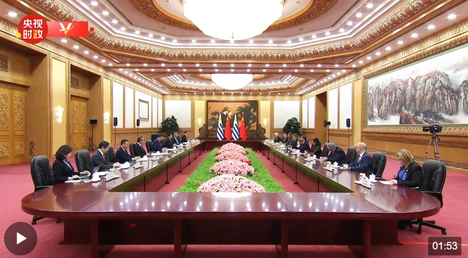 11月22日下午,國(guó)家主席習(xí)近平在人民大會(huì)堂同來(lái)華進(jìn)行國(guó)事訪問的烏拉圭總統(tǒng)拉卡列舉行會(huì)談。
