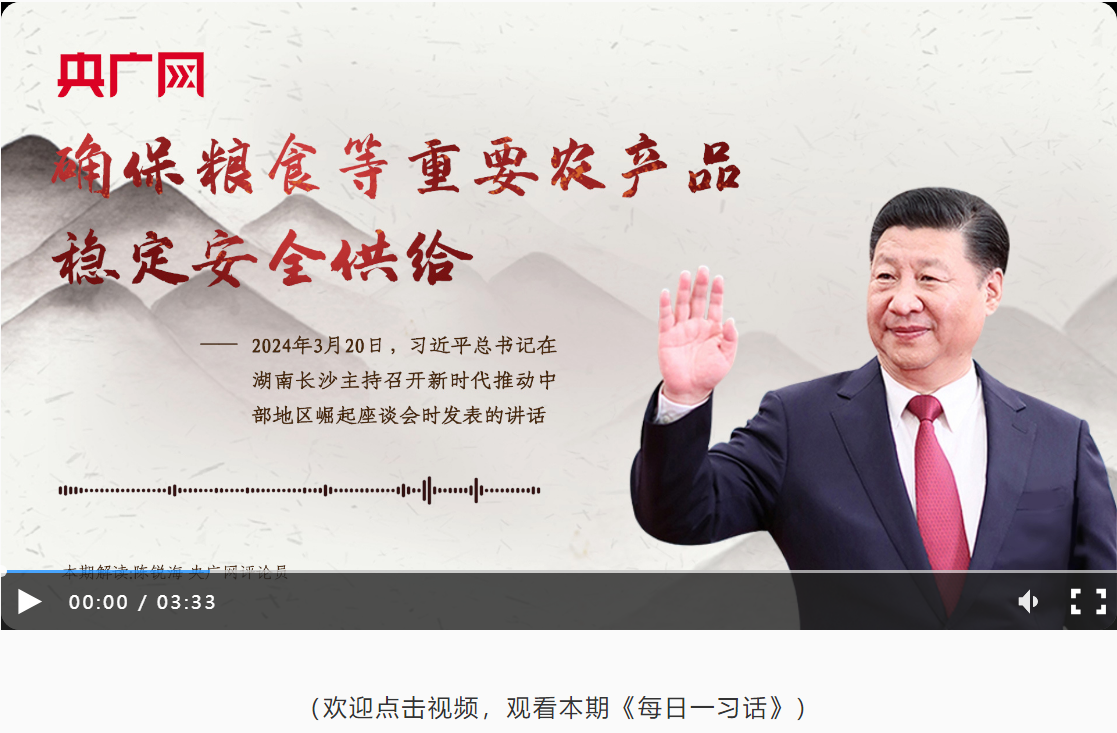 習(xí)近平:高質(zhì)量推進(jìn)糧食生產(chǎn)功能區(qū)、重要農(nóng)產(chǎn)品生產(chǎn)保護(hù)區(qū)和特色農(nóng)產(chǎn)品優(yōu)勢(shì)區(qū)建設(shè),打造一批綠色農(nóng)產(chǎn)品生產(chǎn)加工供應(yīng)基地,確保糧食等重要農(nóng)產(chǎn)品穩(wěn)定安全供給。