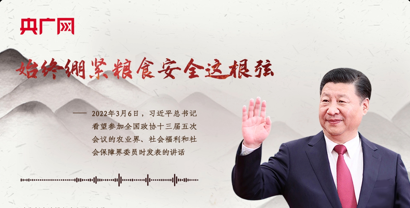 習(xí)近平:要未雨綢繆,始終繃緊糧食安全這根弦,始終堅(jiān)持以我為主、立足國(guó)內(nèi)、確保產(chǎn)能、適度進(jìn)口、科技支撐。