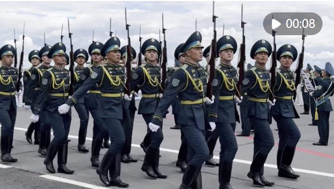 托卡耶夫在機場為習近平舉行盛大隆重的迎賓儀式。100余名儀仗兵英姿挺拔,軍樂團奏響迎賓曲和迎賓號角。近百名哈薩克斯坦兒童揮舞中哈兩國國旗,歡呼“您好”,熱烈歡迎習近平到訪。