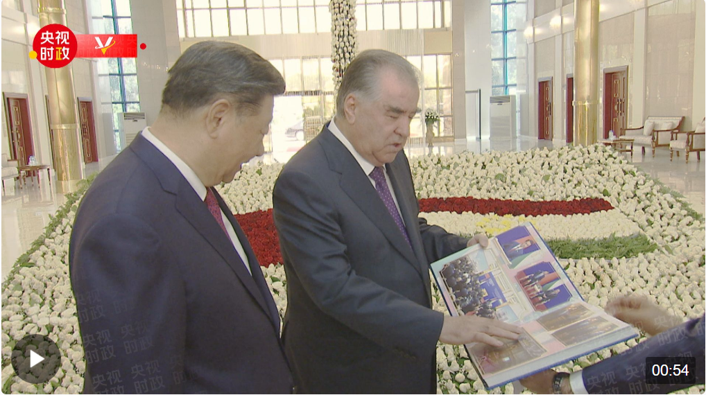 在機(jī)場(chǎng),拉赫蒙向習(xí)近平贈(zèng)送2014年以來(lái)三次訪塔的珍貴相冊(cè),再次熱烈祝賀習(xí)近平主席對(duì)塔吉克斯坦成功進(jìn)行歷史性國(guó)事訪問(wèn)。 cbj安康新聞網(wǎng)