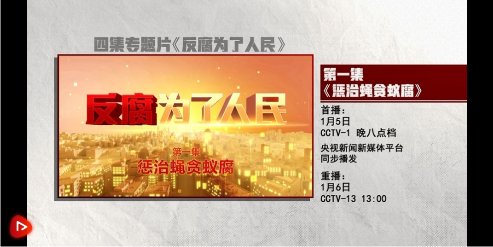 【解說詞】《反腐 為了人民》第一集《懲治蠅貪蟻腐》,敬請關(guān)注。