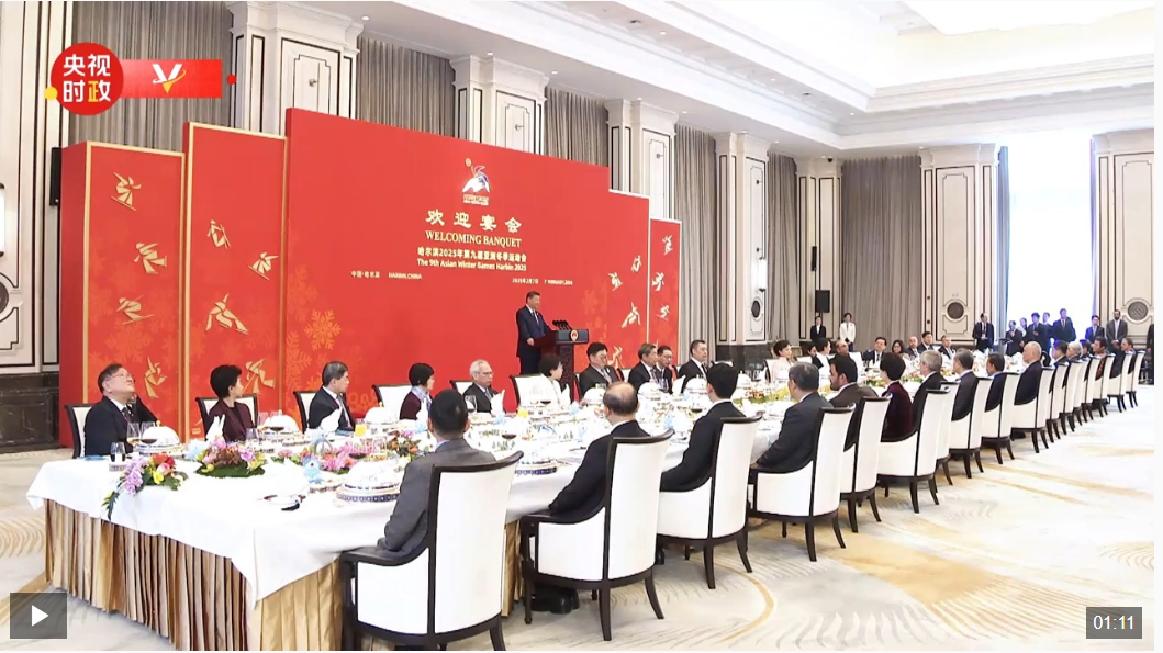 2月7日中午,國(guó)家主席習(xí)近平和夫人彭麗媛在黑龍江省哈爾濱市太陽(yáng)島賓館舉行宴會(huì),歡迎來(lái)華出席哈爾濱第九屆亞洲冬季運(yùn)動(dòng)會(huì)開(kāi)幕式的國(guó)際貴賓。