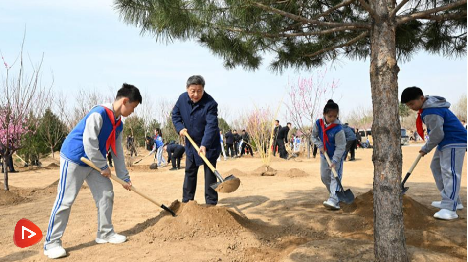 在今年的植樹現(xiàn)場,總書記號召,義務(wù)植樹是全民行動,要一代接著一代干下去,“匯聚共建美麗中國的磅礴力量,讓祖國大地更加綠意盎然、生機勃發(fā)”。