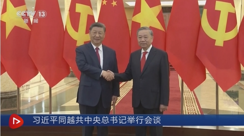 習近平指出,很高興對越南進行國事訪問,實現(xiàn)同蘇林總書記的首輪互訪。今年是越南共產(chǎn)黨成立95周年、越南建國80周年和南方解放50周年,我代表中國共產(chǎn)黨和中國政府向越方致以熱烈祝賀。中方將一如既往支持越南走好符合本國國情的社會主義道路,勝利召開2026年越共十四大,朝著建黨建國“兩個一百年”奮斗目標不斷邁進。
