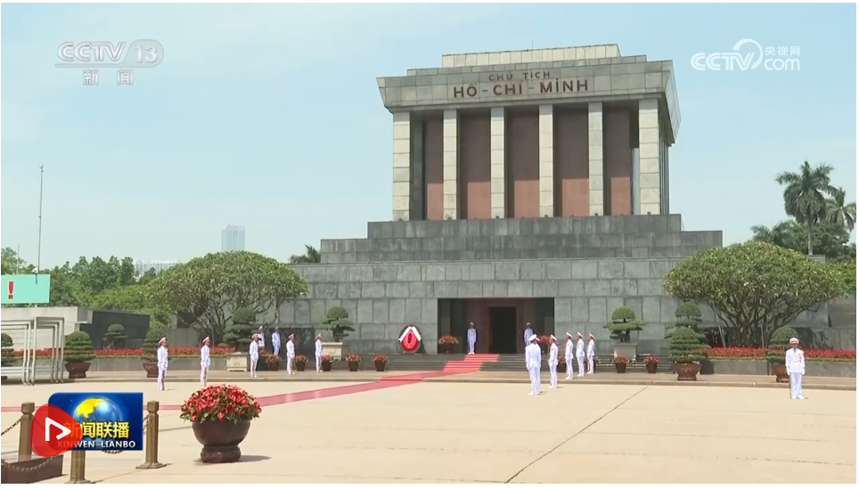4月15日上午,在越共中央總書記蘇林陪同下,中共中央總書記、國家主席習近平瞻仰胡志明陵并敬獻花圈。