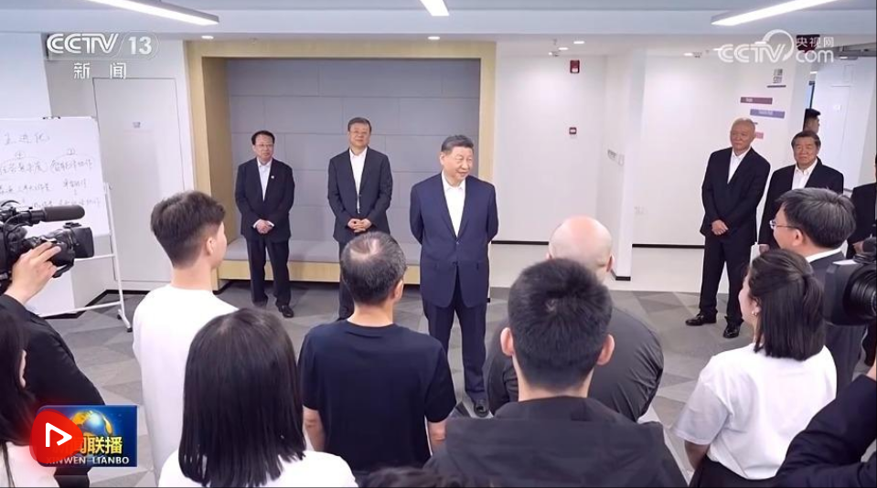 29日上午,習(xí)近平在中共中央政治局委員、上海市委書記陳吉寧和市長龔正陪同下,來到位于徐匯區(qū)的上海“模速空間”大模型創(chuàng)新生態(tài)社區(qū)調(diào)研。