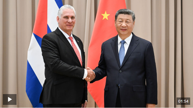 習(xí)近平指出,近年來,我同主席同志多次會晤,共同引領(lǐng)中古關(guān)系進入政治互信更深厚、戰(zhàn)略協(xié)作更緊密、民意基礎(chǔ)更牢固的新階段。今年是中古建交65周年,中方愿同古方進一步鞏固鐵桿情誼,構(gòu)建更加緊密的中古命運共同體,樹立社會主義國家團結(jié)合作、發(fā)展中國家真誠互助的典范。雙方要促進各層級交往、各領(lǐng)域合作進一步走深走實,讓高水平政治互信始終成為中古兩黨兩國關(guān)系的鮮明標(biāo)識。中方堅定支持古巴捍衛(wèi)國家主權(quán)、反對外來干涉和封鎖,支持古巴經(jīng)濟社會發(fā)展。作為全球南方重要成員,雙方要在金磚、中拉論壇等框架內(nèi)加強協(xié)調(diào)和配合,反對強權(quán)政治和單邊霸凌,維護國際公平正義。