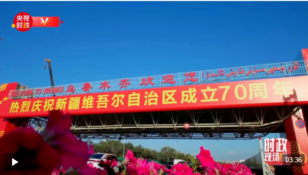 中共中央總書(shū)記、國(guó)家主席、中央軍委主席習(xí)近平率中央代表團(tuán)23日下午乘專(zhuān)機(jī)抵達(dá)烏魯木齊,出席新疆維吾爾自治區(qū)成立70周年慶;顒(dòng)。14時(shí)20分許,習(xí)近平乘坐的專(zhuān)機(jī)在天山國(guó)際機(jī)場(chǎng)降落,等候在停機(jī)坪的新疆各族各界群眾熱烈歡呼。習(xí)近平走下舷梯時(shí),少先隊(duì)員獻(xiàn)上鮮花。各族群眾代表身著民族服飾,載歌載舞,歡迎總書(shū)記的到來(lái),表達(dá)對(duì)總書(shū)記的衷心祝福。