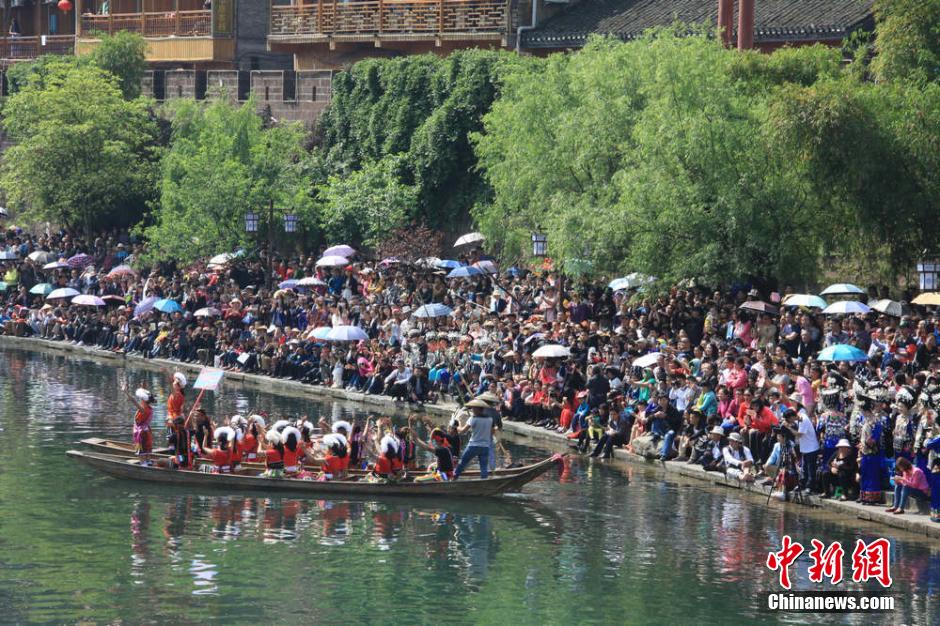 5月6日,2014中國?鳳凰苗族“四月八”跳花節(jié)在湖南鳳凰古城舉行,鳳凰縣及其附近的苗族、土家族等各民族歡聚于此,上演了一場苗族服裝盛宴。“四月八”是苗族人重要的傳統(tǒng)節(jié)日,又稱“亞努節(jié)”和“東方情人節(jié)”。唐小晴 攝cAQ安康新聞網(wǎng)