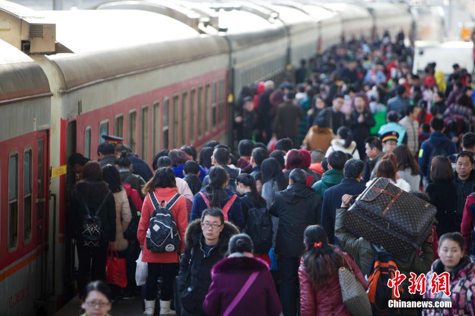 2月23日,山西太原火車站,民眾正在排隊等待乘車。隨著農(nóng)歷春節(jié)“大年”結(jié)束,中國鐵路迎來客流高峰。中國鐵路總公司預(yù)計,當(dāng)日中國鐵路發(fā)送旅客925萬人次。 張……