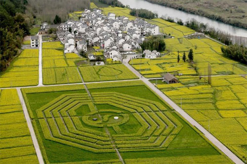 3月24日,安徽齊云山油菜花盛開金黃與一個(gè)“太極八卦圖”相映成趣。近日,在安徽黃山市休寧縣齊云山腳下南坑村360多畝盛開金黃的油菜花叢中,一個(gè)巨型的“太……