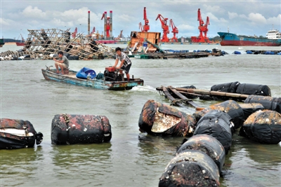 7月19日,受臺(tái)風(fēng)“威馬遜”影響,一條虎頭鯨受傷擱淺在廣東陽(yáng)江市海陵島附近海域,武警邊防官兵嘗試著將鯨魚(yú)送到深水區(qū)。昨日,廣西欽州漁民在搶修被臺(tái)風(fēng)破壞的……