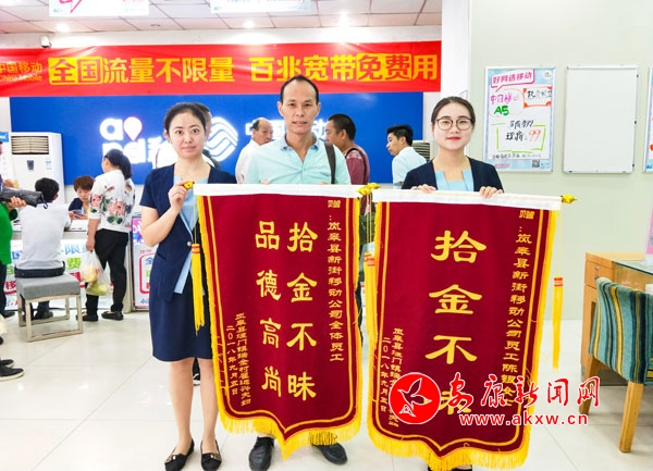 安康新聞網(wǎng)訊(通訊員 張彥杰 楊錚)9月7日中國(guó)移動(dòng)嵐皋分公司營(yíng)業(yè)廳一開(kāi)門(mén),一名叫翟遠(yuǎn)興的客戶就向移動(dòng)營(yíng)業(yè)班及賣(mài)場(chǎng)營(yíng)業(yè)員陳銀贈(zèng)送了拾金不昧,品德高尚兩面錦旗,F(xiàn)場(chǎng)辦理業(yè)務(wù)的顧客紛紛豎起手指向嵐皋移動(dòng)點(diǎn)贊。