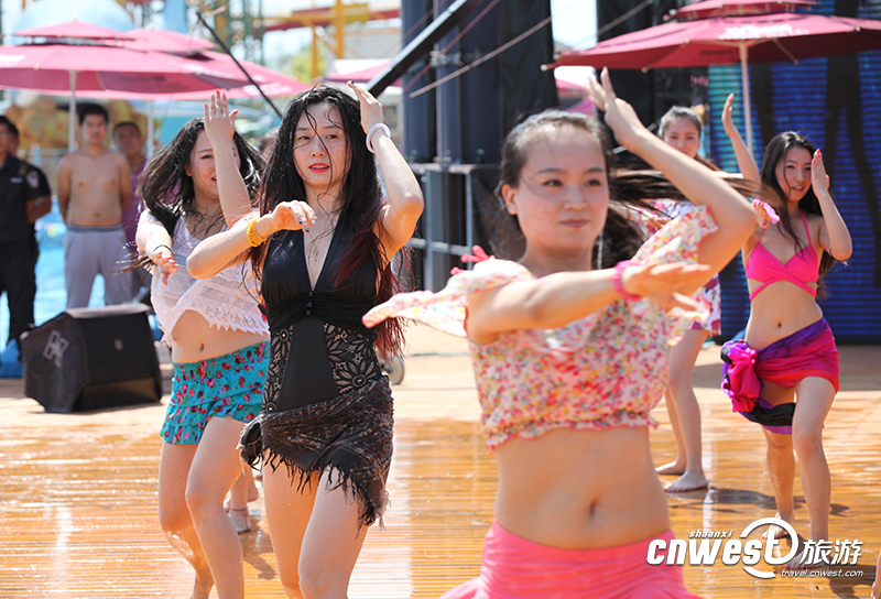 西安千人著泳裝水中跳小蘋果