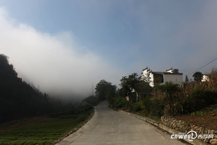 廣佛鎮(zhèn)鐵爐村,路邊的徽派民居在大巴山的云霧里靈動飄逸。