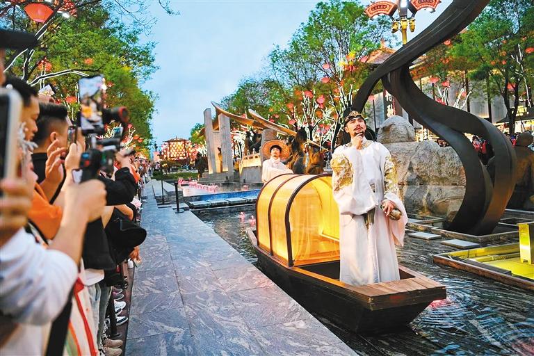 著一襲唐飾唐裝、觀一場(chǎng)唐風(fēng)唐藝、聽一段唐音唐樂、品一口唐食唐味……每一位游人都能在這里體驗(yàn)一場(chǎng)跨越時(shí)空的精神之旅,身臨其境地感受“大唐煙火”。