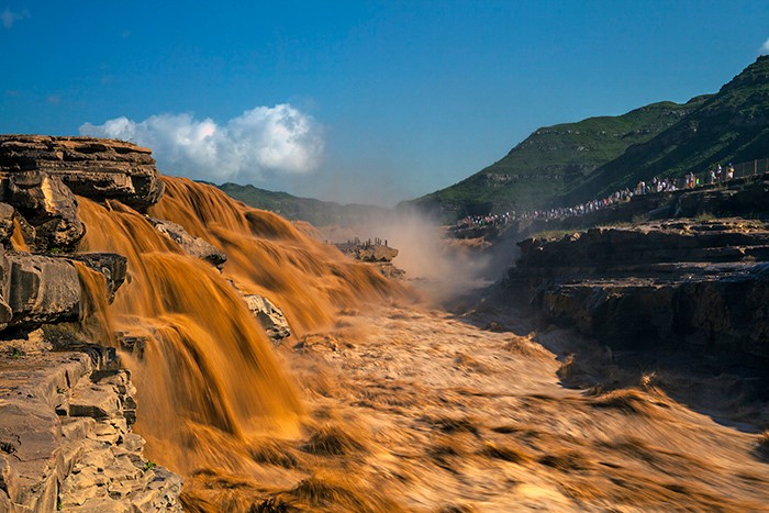 延安壺口瀑布進(jìn)汛期 主副瀑布連一線