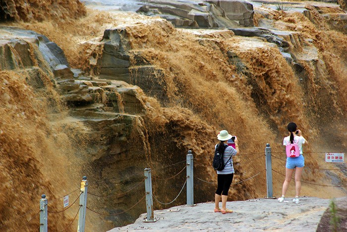 延安壺口瀑布進(jìn)汛期 主副瀑布連一線