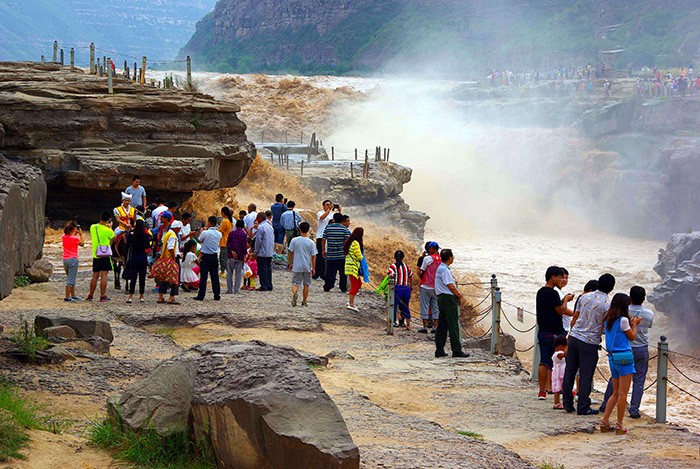 延安壺口瀑布進汛期 主副瀑布連一線