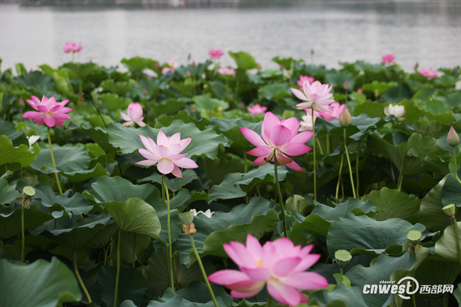 曲江池荷花爭相開放 端莊美麗引游人