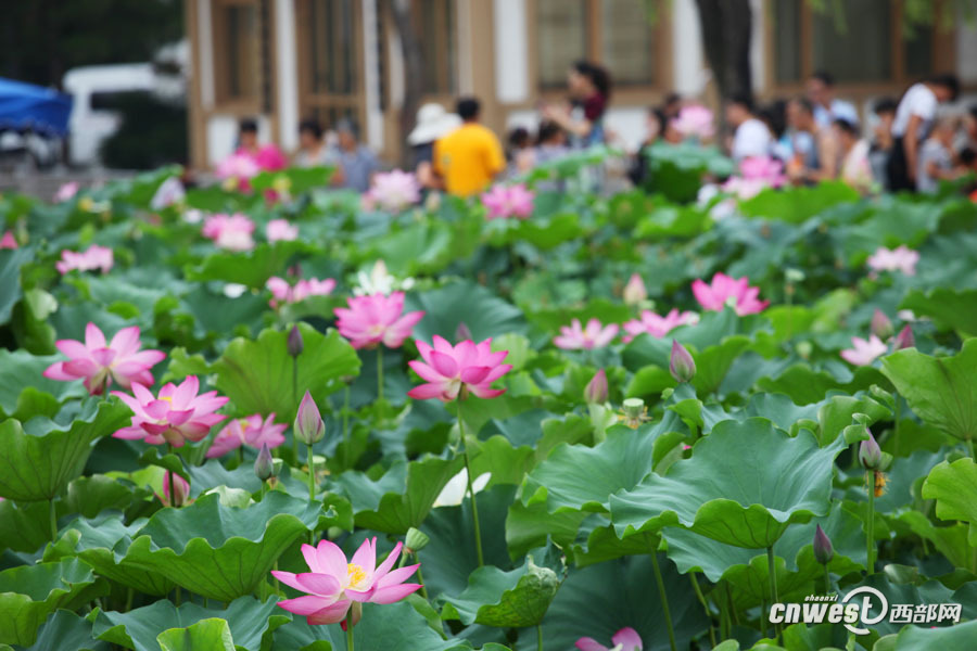 曲江池荷花爭相開放 端莊美麗引游人