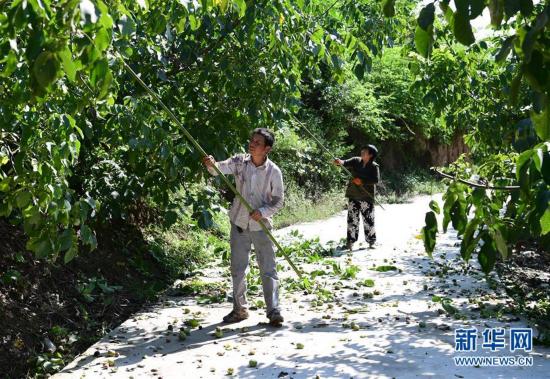 9月6日,陜西周至縣翠峰鎮(zhèn)官莊村的村民在核桃園內(nèi)采收核桃。近日,陜西多地的核桃進入收獲季,當?shù)剞r(nóng)民搶抓農(nóng)時進行采收,一片忙碌景象。 新華社記者 邵瑞 攝JxK安康新聞網(wǎng)