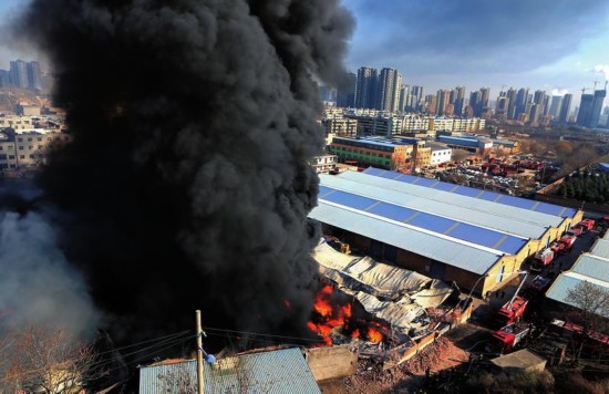 一位重慶阿姨,站在著火倉庫外面,沒說幾句就哭了,“放在里面的貨全燒光了。”重慶阿姨在西安賣塑料制品,在這個(gè)倉庫租了1000多平方米當(dāng)作庫房,上下兩層高,“全部的貨價(jià)值1000多萬元,進(jìn)出貨物的電子臺(tái)賬、賬簿也在倉庫,我早上4點(diǎn)多還新進(jìn)了一批,正準(zhǔn)備往倉庫放,車還沒到這里,就看見著火了。”