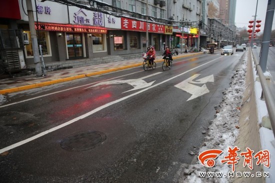 1月7日,在西安市咸寧路上,在寶馬車打滑的路段上,早上下雪后,下午已經(jīng)看不到積雪。 華商記者 鄧小衛(wèi) 攝影報(bào)道
