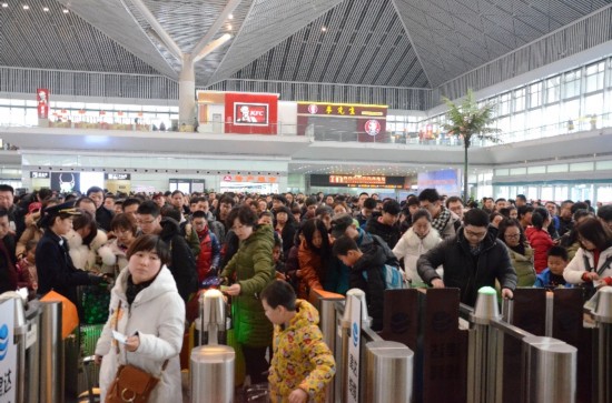 1.客流高峰期,進站口、安檢、售票處排隊旅客較平日明顯增多,通過互聯(lián)網(wǎng)訂票成功的旅客,請合理規(guī)劃出行時間,提前至車站換取紙質(zhì)車票候車,以免耽誤行程。