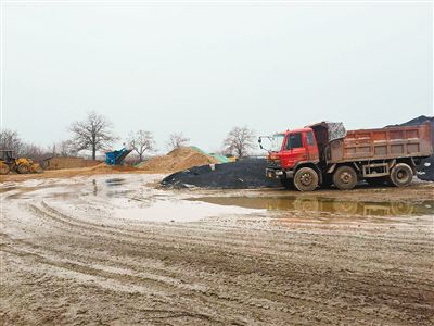 隨后,記者來到國際港務(wù)區(qū)秦漢大道與西韓路十字西南,市鐵腕治霾辦3月12日曾檢查過西韓路西側(cè)的二灰石及沙石料場,當時場內(nèi)存在大面積沙石、二灰石料、白灰未按要求覆蓋,場內(nèi)車行道路浮土較厚,沖洗設(shè)備不能正常使用,導(dǎo)致車輛帶土上路長距離污染西韓路。市鐵腕治霾辦向國際港務(wù)區(qū)管委會下發(fā)了督辦單,要求5個工作日內(nèi)整改。3月20日是下發(fā)督辦單后的第6個工作日,記者對該料場進行了回訪,發(fā)現(xiàn)場內(nèi)因為前幾天下雨,泥濘不堪,不難看出,晴天時存在較厚浮土。同時,場內(nèi)依舊有大量渣土未覆蓋完善。