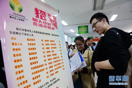 4月1日,學生在招聘會上了解銅川市耀州區(qū)人民醫(yī)院招聘情況。當日,陜西省2018年縣及縣以下醫(yī)療衛(wèi)生機構定向招聘醫(yī)學類本科畢業(yè)生專場招聘會在陜西省人才交流服務中心舉行,現(xiàn)場提供崗位2415個,涉及臨床醫(yī)學、預防醫(yī)學、口腔醫(yī)學、醫(yī)學影像等專業(yè)。新華社記者李一博攝xuS安康新聞網