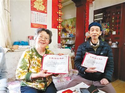 徐斌夫婦拿到榮譽(yù)證書后合影留念