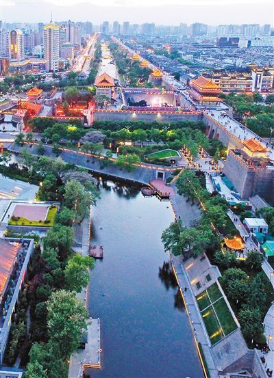 西安護(hù)城河全長14.7公里,既是重要城市景觀,同時兼有城市防汛重任,它承擔(dān)著老城區(qū)36平方公里范圍內(nèi)的雨水排泄,是市區(qū)的主要防汛蓄洪設(shè)施之一。環(huán)城墻建有7座攔水壩,實(shí)行階梯式分段蓄水,形成了集城市水體景觀、河道蓄排、調(diào)節(jié)和攔洪的完整體系。