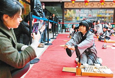 孩子們?cè)诟改傅膸ьI(lǐng)下體驗(yàn)中國(guó)傳統(tǒng)文化。 (資料圖片 首席記者 李明 攝)