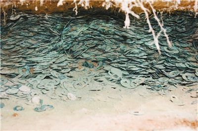 連日來,考古人員在鳳縣鳳州鎮(zhèn)一高速公路施工現(xiàn)場發(fā)現(xiàn)一處東漢早期儲錢窖,搶救整理出200多公斤距今有2000多年歷史的古錢幣。這對研究東漢時期鳳縣的政治、經(jīng)濟、文化有著重要的參考意義。
