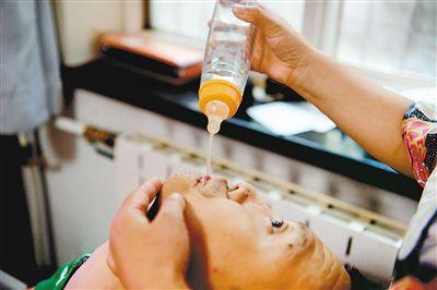 家人幫他喝水