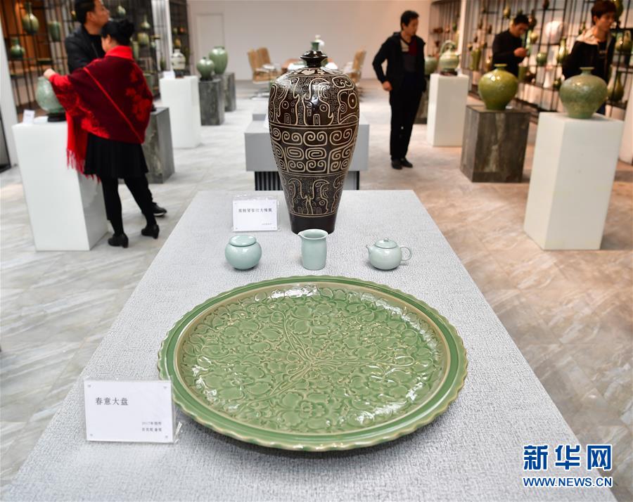 10月21日,在耀瓷小鎮(zhèn)創(chuàng)意園區(qū)大師坊內(nèi),游客在參觀耀瓷工藝品。 新華社記者 邵瑞 攝