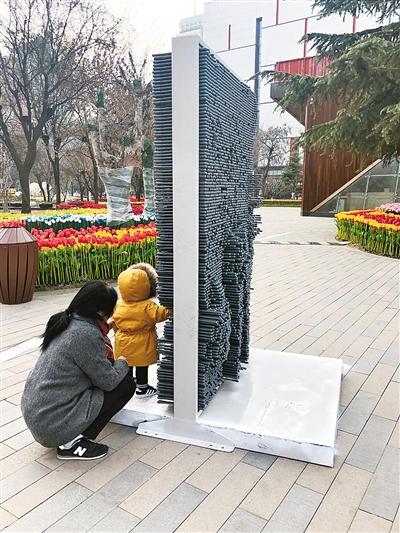 根據(jù)伍先生反映的情況,24日上午,記者來(lái)到位于高新區(qū)的創(chuàng)業(yè)咖啡街區(qū),在街區(qū)北側(cè)廣場(chǎng)上,記者看到伍先生提到的4座三維人體百變針雕。整個(gè)針雕是一個(gè)類似大相框的鐵架子,中間放置了上千根塑料材質(zhì)的針管。人只要向這些針管靠進(jìn)去,對(duì)面就會(huì)印出一個(gè)立體的人形,非常有趣。然而記者注意到,雖然每個(gè)大鐵框下方預(yù)留有螺絲孔,但卻沒(méi)有進(jìn)行固定。現(xiàn)場(chǎng),不時(shí)有孩子和市民好奇地在上面玩耍。