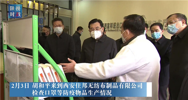 胡和平來到西安市鄠邑區(qū)西安住邦無紡布制品有限公司,檢查口罩等防疫物品生產(chǎn)情況。