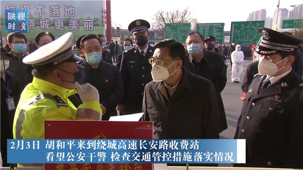 胡和平來到繞城高速長(zhǎng)安路收費(fèi)站,看望公安干警,檢查交通管控措施落實(shí)情況,并來到西安市鄠邑區(qū)五竹街道五竹村檢查疫情排查防控工作。