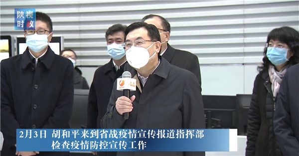 2月3日,省委書記胡和平到省戰(zhàn)疫情宣傳報(bào)道指揮部和西安市檢查新型冠狀病毒感染的肺炎疫情防控工作,看望慰問防控一線工作人員。