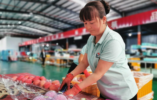 在頂端果業(yè)的生產(chǎn)車間里,一個(gè)個(gè)蘋果通過選果線,經(jīng)過測外觀、測糖酸比、測霉心等環(huán)節(jié)的智能篩選,“淘汰”不符合標(biāo)準(zhǔn)的蘋果,然后按照不同規(guī)格和需求,分流到各個(gè)渠道進(jìn)行包裝和對外銷售。