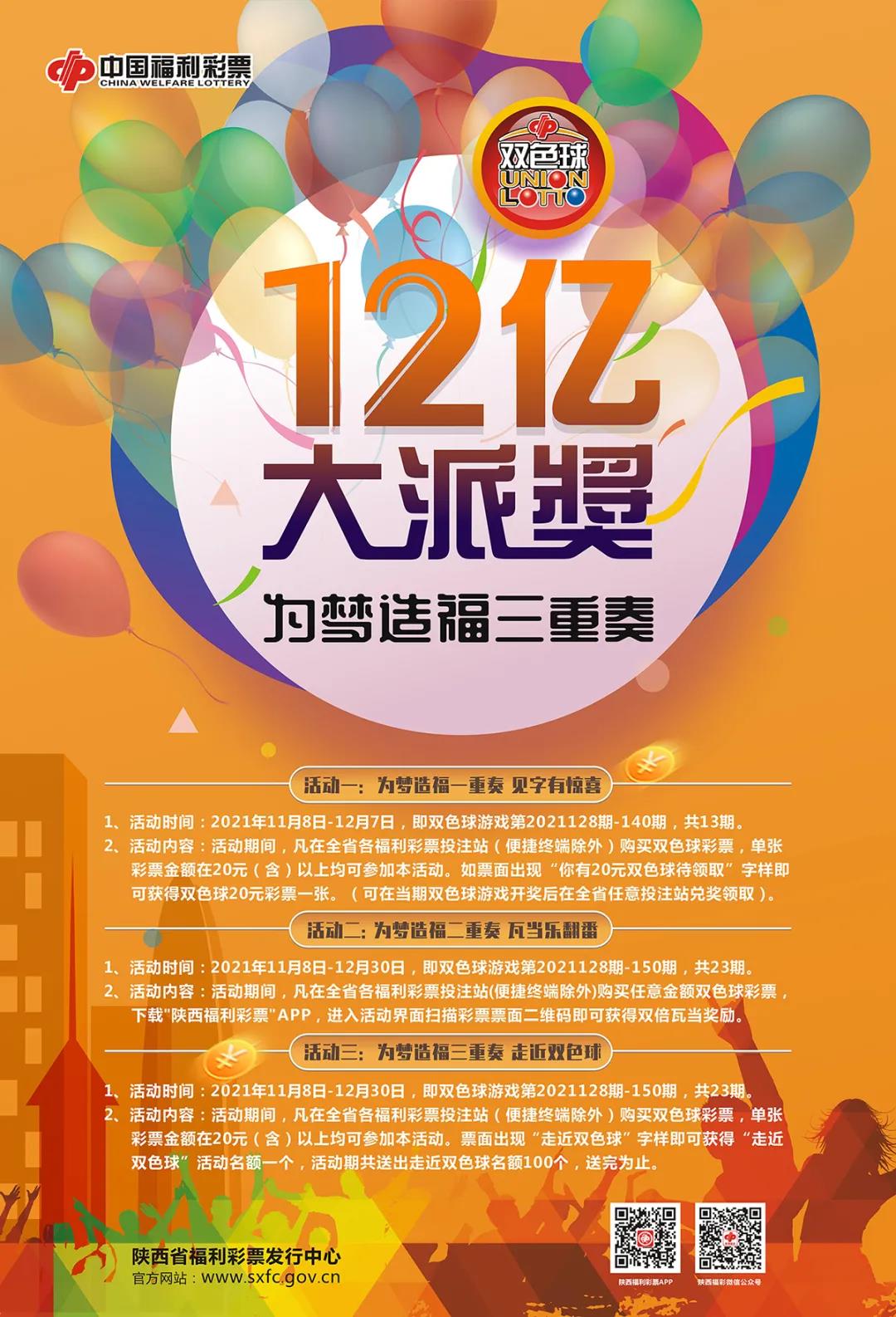 為夢(mèng)造福,歡樂開啟,陜西福彩驚喜好禮送不停,活動(dòng)時(shí)間:2021年11月8日-12月30日。