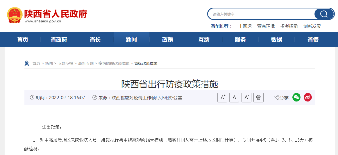 陜西省應對疫情工作領導小組辦公室日前發(fā)布陜西省最新出行防疫政策措施。
