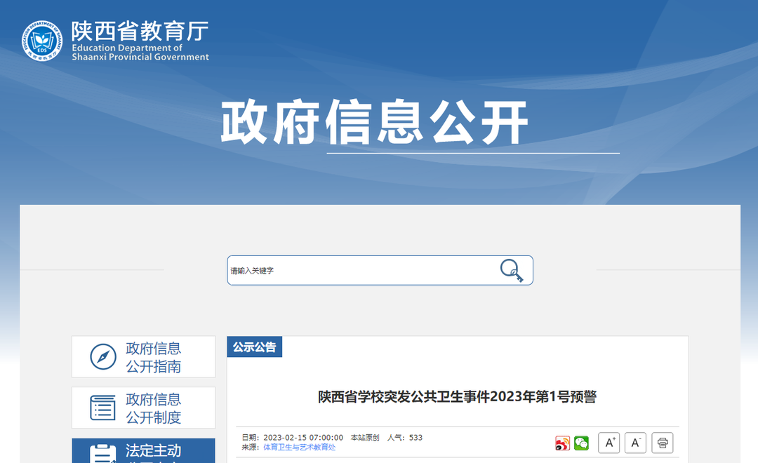 2023年2月,陜西省學(xué)校和幼兒園陸續(xù)開學(xué),呈現(xiàn)人員流動(dòng)性大、聚集性強(qiáng)等特點(diǎn)。據(jù)WHO發(fā)布的公報(bào)稱新冠感染繼續(xù)構(gòu)成國際關(guān)注的突發(fā)公共衛(wèi)生事件,且全球繼續(xù)報(bào)告新型變異毒株。開學(xué)季應(yīng)持續(xù)高度警惕,樹立多病共防意識(shí),確保師生安全。根據(jù)省疾病預(yù)防控制中心突發(fā)公共衛(wèi)生事件風(fēng)險(xiǎn)評(píng)估報(bào)告,結(jié)合既往突發(fā)公共衛(wèi)生事件發(fā)生情況及傳染病流行特征分析,全省學(xué)校和幼兒園應(yīng)特別關(guān)注以下事件:
